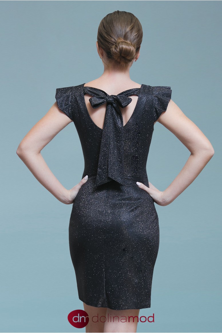Короткое платье прилегающего силуэта украшено кокетливыми рукавами-крылышками. Оно имеет оригинальную открытую спинку, на которой завязывается милый бант. Изделие сшито из антика и прекрасно держит форму. Платье подчеркнет молодость и свежесть его обладательницы, которая подобно нераспустившемуся бутону будет притягивать мысли и взоры.
