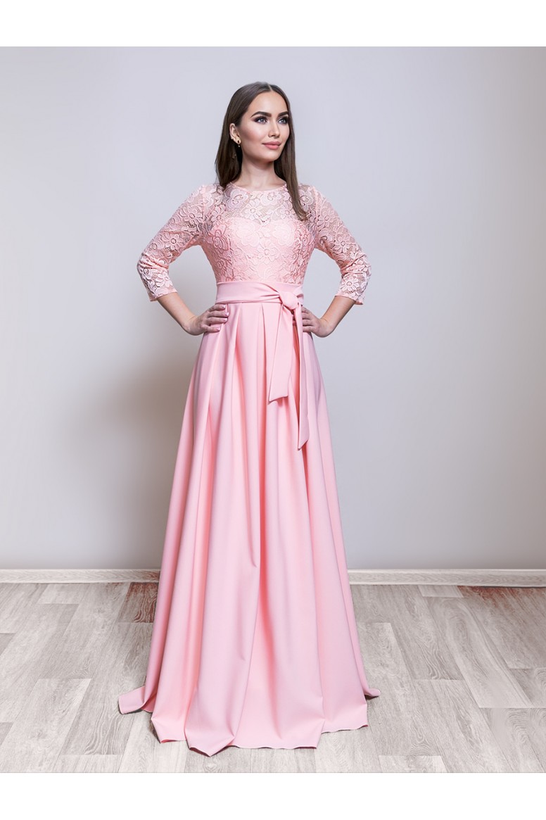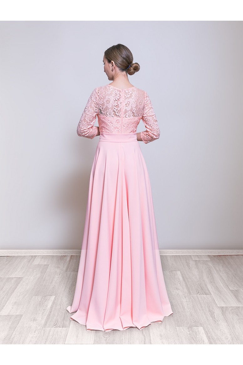 This evening dress looks sophisticated and feminine-an imitation of a blouse made of delic..