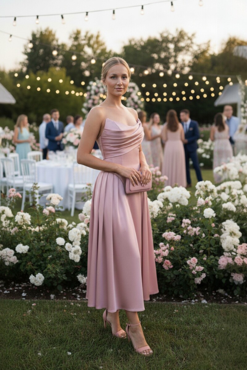 - Для металлических оттенков (Серебро, Золото): Минимизируйте jewelry. Платье само по себе является украшением. Достаточно крупных серег-колец.