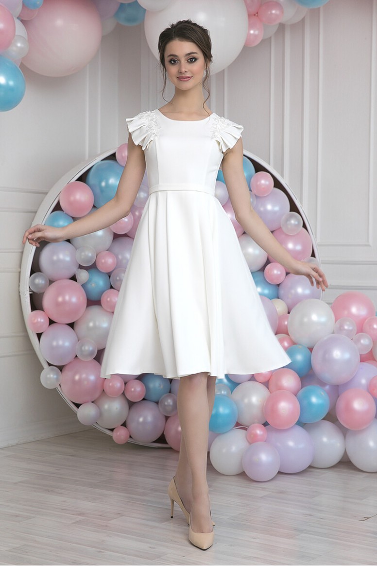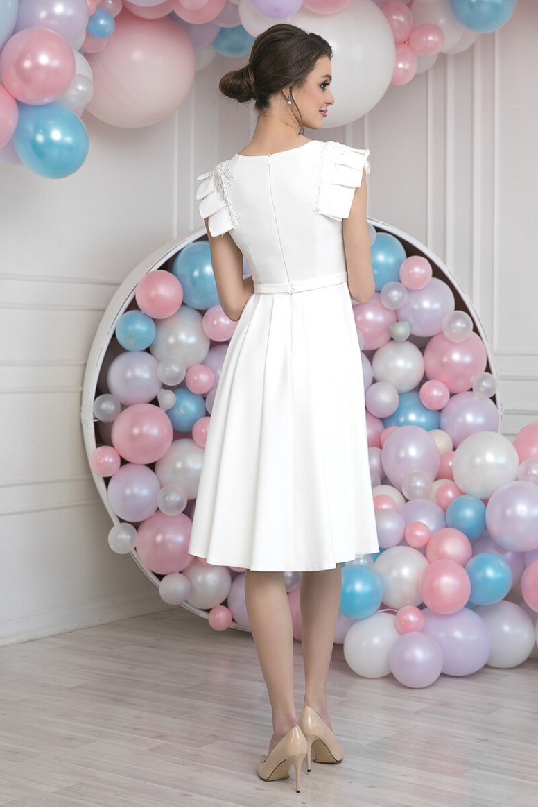 Комфортное свадебное платье длины "миди" не отягощено излишним декором, идеально подчеркив..