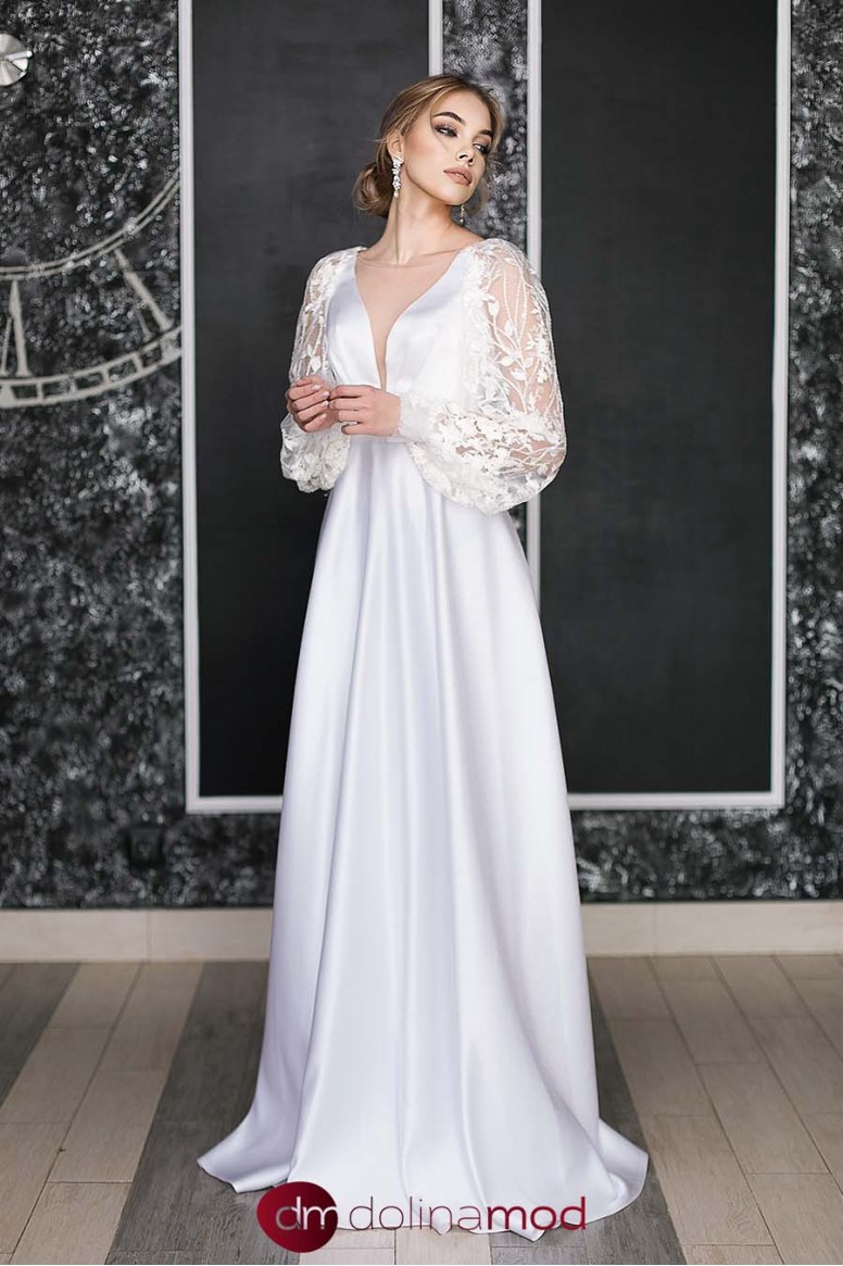 платье с длинным рукавом, длинное платье, нарядное платье, пышное платье, платье на свадьбу, бальное платье, открытое платье, кружевное платье, платье с вырезом, атласное платье