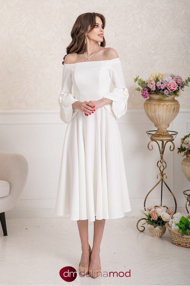 Свадебное платье миди с рукавами и открытыми плечами Sienna MS-993