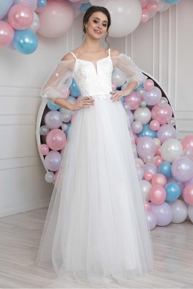 Свадебное платье с прозрачными пышными рукавами Diletta MS-983